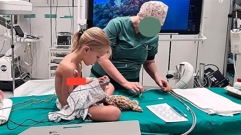 An hour or so later, anesthesiologist joined us. We tried convincing Emanuela to forget about the needle and that she just needed to do some inhalations. She reluctantly accepted the mask, and once she was relaxed enough, the nurse finally took the blood she needed for the pre-catheterisation tests.