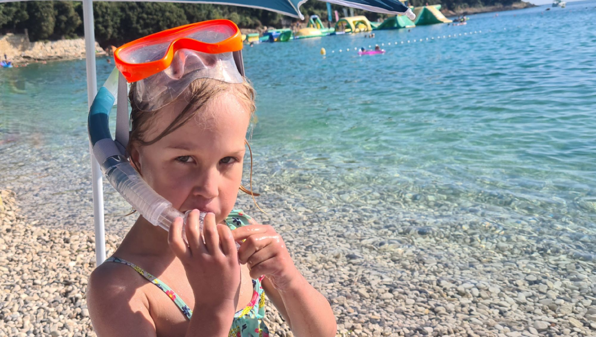 By solving a snorkel challenge, I burdened myself with another one - when (and how) to get her out of the water. She persists convincing me she is not cold, and does not need rest, even though her lips turn purple, her forehead and nose change to a certain shade of grey, and a deep blue paints her fingers. On top of her changing colours with the speed a mature chameleon would envy, her body tends to shiver and her teeth chatter.